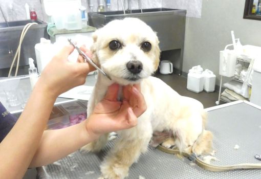 2026.04.20 オフィシャルブログ MIX らむちゃん ミックス犬のらむちゃん💛 シャンプー前に全身粗刈りして、シャンプー&ブローの負担を軽減します☆ お顔は特に、涙やよだれ、食べ物などが付着して固まっている所があるので、先に汚れ部分をカットしておくことでブラシの引っ掛かりを防い… 続きを読む 続きを読む