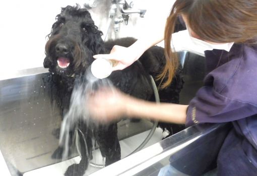 2026.02.12 オフィシャルブログ ラブラドゥードル スンクくん お風呂中のスンクくん! 重炭酸シャワーで地肌までしっかりすすいでいきます(๑>◡<๑) シャンプー前のすすぎはただ濡らすのではなく、被毛をかき分けながら地肌を洗うように行います☆ シャンプー前のすすぎで仕上がりが全然違うのです☆… 続きを読む 続きを読む