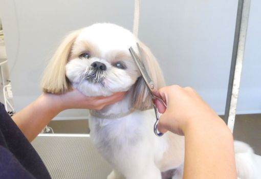 2025.12.05 オフィシャルブログ シーズー メイくん トリミング中のメイくん! お顔を持たれるのが苦手でイヤイヤしてしまうので持ち方を模索しながらカットしていきます(´艸`*) もうちょっと、ここ切りたい!っと思う所もありますが、完璧を求めて無理強いしてしまうと余計に嫌な思いをさせてしまうので… 続きを読む 続きを読む