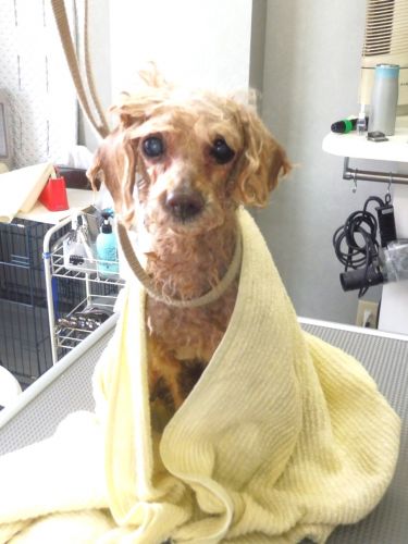 高齢犬なので手早く行うために二人係で行っていきます(≧▽≦)