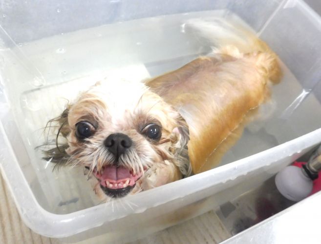 今日も温浴で蓄積汚れを落としつつピカピカ被毛に仕上げていきます☆