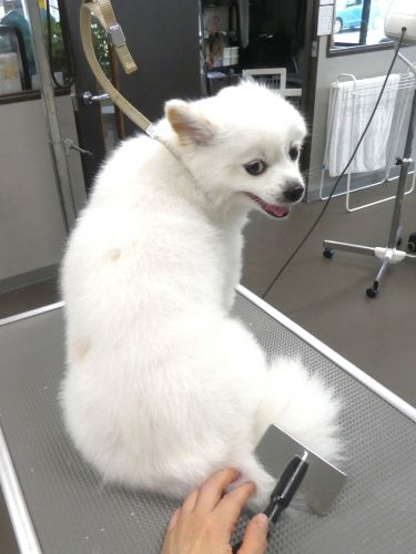 この後、離れたトリミングテーブルに移動したら安心した様子になりました☆
