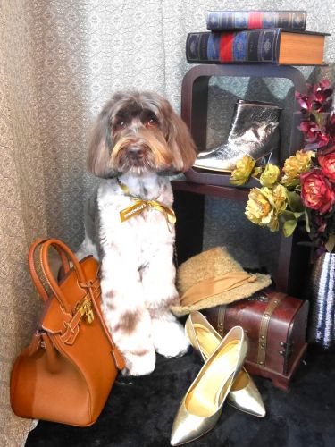 レイちゃんのオシャレな毛色は目の錯覚を起こしやすいので、根本からコームで毛を上げて少し離れたところからカットの確認をします!