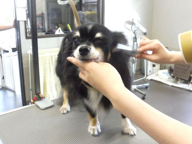 お顔周りはコームに持ち替えてしっかり乾かしていきます!