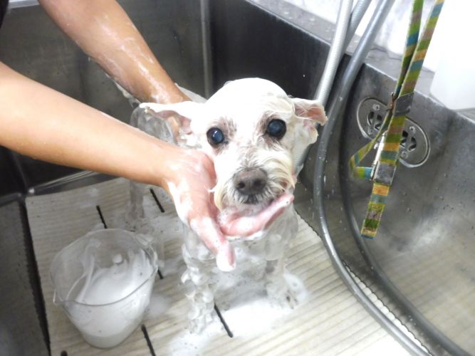 高齢で目が見えなかなってから高いところを怖がってしまうようになったので2人係で手早く行っていきます(๑>◡<๑)