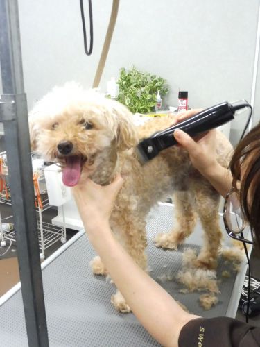 高齢犬でご家族からも負担を軽減してほしいとのご要望なので、四肢もバリカンを入れてスッキリカットで負担軽減します(´艸`*)