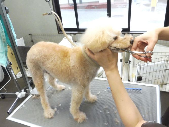 お顔も先にあら刈りしてからブラシをしていきます💛