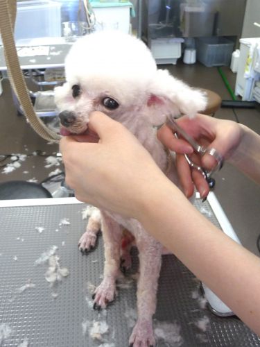 トリミング施術中は、動く動物に刃物を使用する大変繊細で危険を伴う作業を行っております。