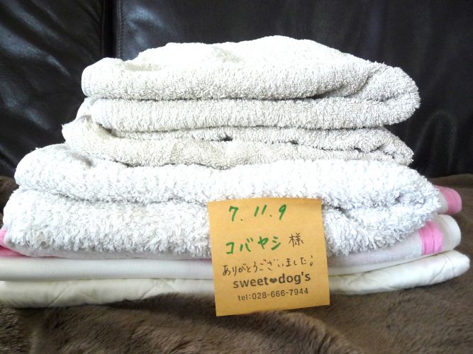 ・使い古しハンドタオル・フェイスタオル・バスタオル(シミや穴があっても洗濯してあれば大丈夫です。衛生環境を保つため消毒清掃や介護犬の敷物として日々大量に使用します。)