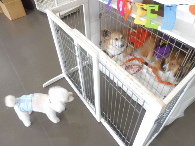 ミルクくんより大きなワンちゃんにいばりんぼ中のミルクくん(≧▽≦)