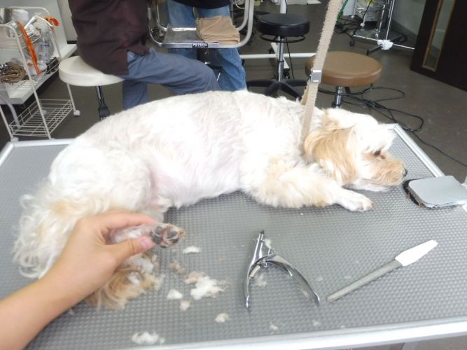 爪切りや足裏バリカンが苦手でイヤイヤしていましたが、今では伏せをしてジーッと頑張ってくれるクリムくん♡