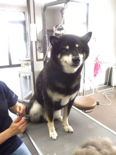 足先のお手入れは好きじゃないので、お座りをして足を上げさせまいと抵抗中です(≧▽≦)