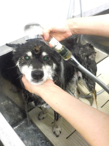 軽く流しただけでは地肌は全く濡れない柴ちゃんの毛(≧▽≦)
