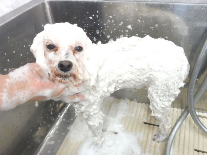 お顔はたくさん撫でてもらう分、べたつきやすいので念入りに洗いました!