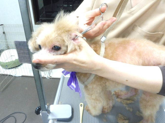 トリミングの最後には、お耳の中の毛を抜いて、優しくお耳の中を拭き取ります☆