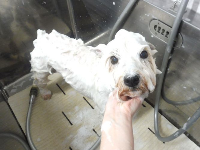 毛が硬いので洗い残しすすぎ残しの無いよう念入りにチェックしながらやらせて頂いています(*^▽^*)
