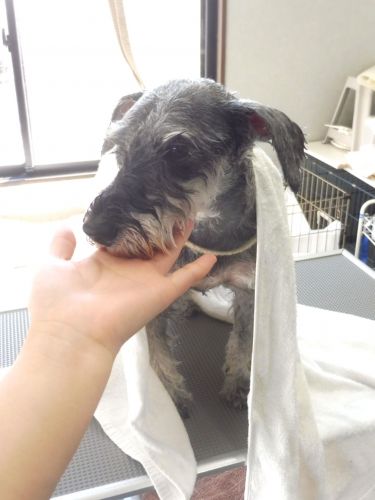 お顔を下げちゃうので顎を軽く支えてあげると私の手の臭いを嗅いでいました(笑)