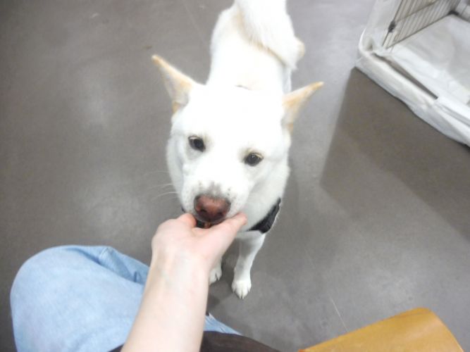 トリミングが終わっておやつを食べる余裕もでてきたむさしくん!
