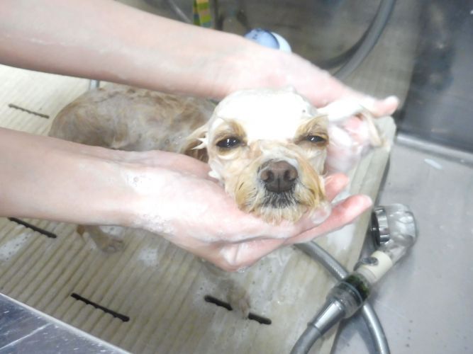 最近はだいぶ慣れてくれて、シャワーでも頑張ってくれています!