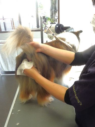 起きてもらいブラシをして足裏バリカン爪切りをしてからお尻を絞っていきます(*^^*)