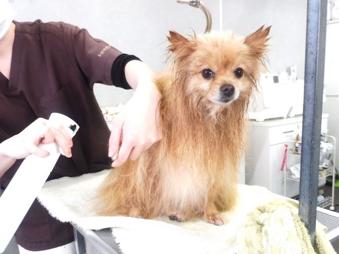 初めてのスプレーに戸惑うワンちゃんもいますが、アッシュくんはされるがままでした(≧▽≦)