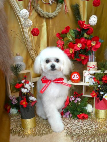 ご来店早々に、看板犬はぴさんとdiamondさんに新年のご挨拶をしてくれました🎍