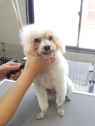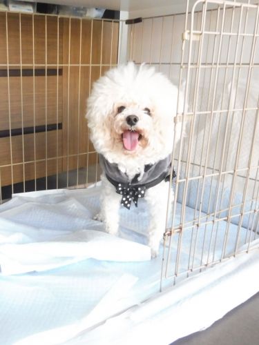 とっても嬉しそうにお店中を走り回っていたのに、トリミングが始まりそうなのを察すると自分からゲージの中へ…(~_~)