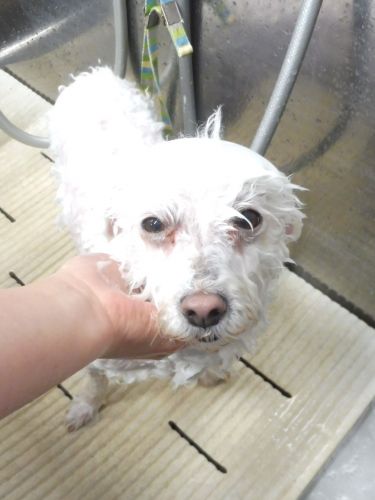 シャンプーをすすいだ後、真っ白になった被毛を見ると私もスッキリ!気分がいいです♪
