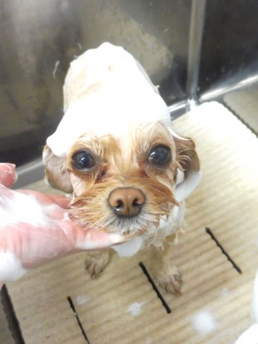 お顔はニオイや涙ヤケが気になるので、丁寧に洗わせて頂きました!