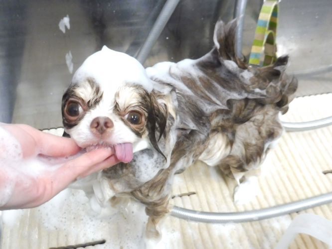 お鼻に泡やお湯が入らないように注意しながら、丁寧にシャンプーさせて頂きました☆