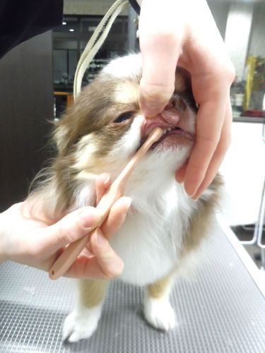 可愛い小さな歯を少しずつゴシゴシ☆