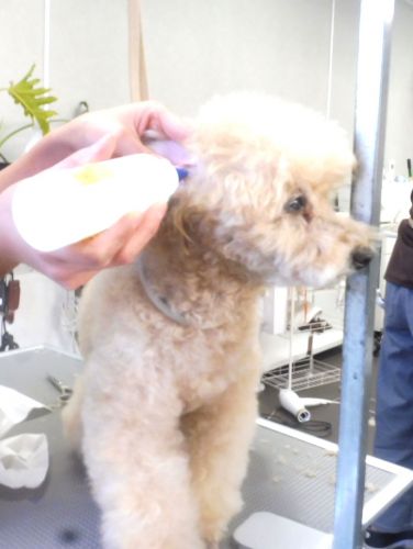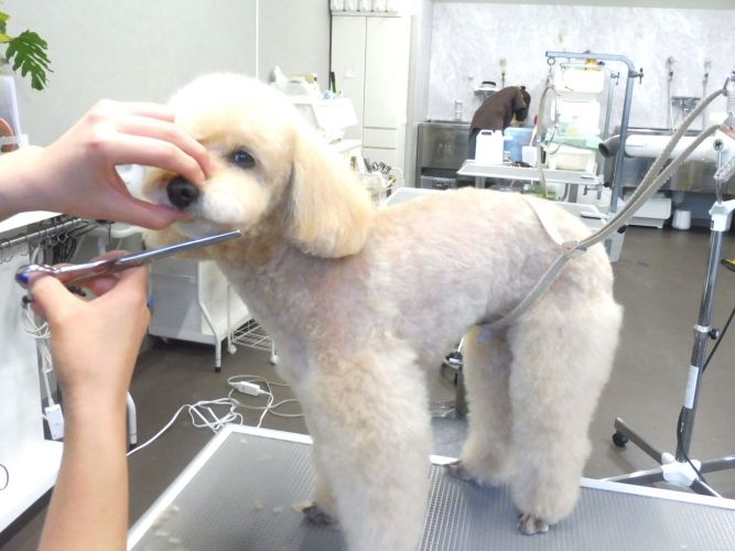 お顔のカットはちょっぴり苦手なちまくんなので、優しく触れるようにしてちまくんの動きに合わせてついていきます( *´艸`)