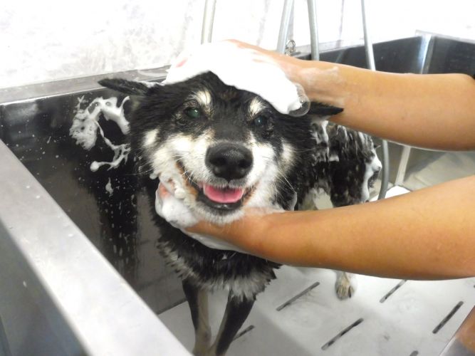 普段はお顔を撫でると怒ってしまいますが、シャンプー中は気持ちいいのを知っているのでされるがまま(笑)