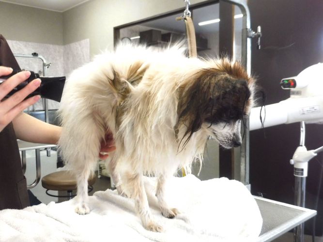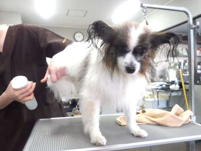 風で水分をしっかり飛ばしながら皮膚のチェックもしていきます(^^♪