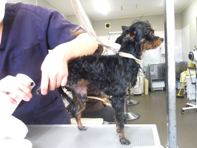 トリミング施術中は、動く動物に刃物を使用する大変繊細な作業を行っております。
