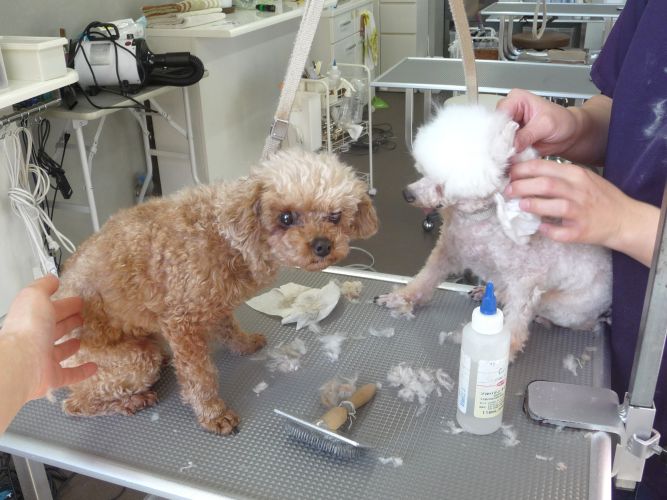 トリミング施術中は、動く動物に刃物を使用する大変繊細で危険を伴う作業を行っております。