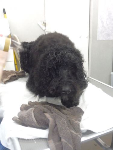 トリミングテーブルの上で伏せをして休憩する姿を見せてくれるだけで、とっても嬉しい!!