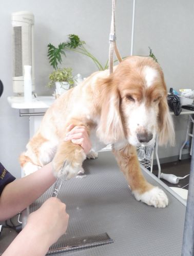 前足のカットはちょっぴり苦手なデレクくん!!
