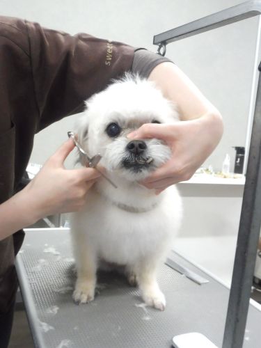 今回はシャンプーコースなので汚れやすい足回り、お尻、目と口に入る毛をしっかり整えていきます!