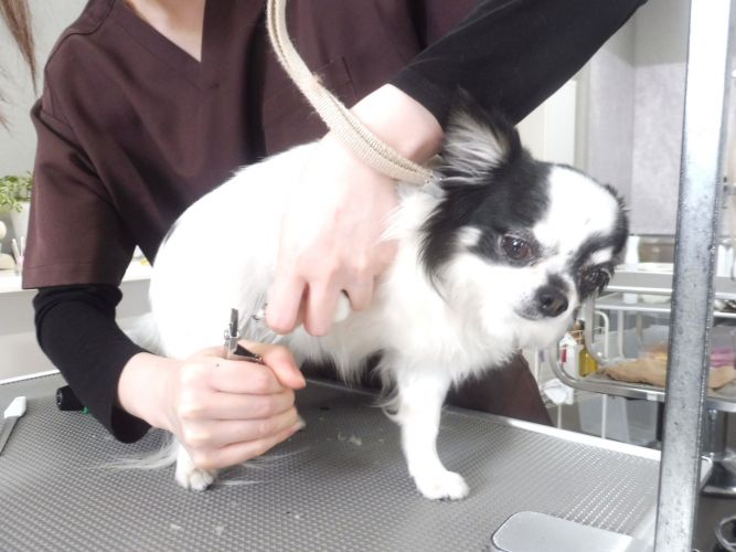 苦手な前足の爪切りに頑張って耐えています( *´艸`)
