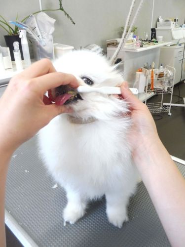 クッキーちゃんの小さな歯をしっかり磨いていきます(≧▽≦)