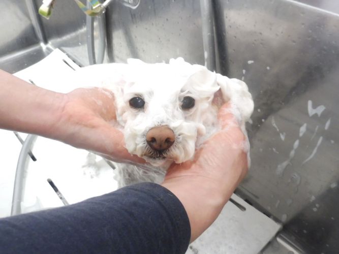 涙や食べ物、耳から出る脂などで臭いが出やすいお顔は、特に念入りに洗ってスッキリ仕上げさせて頂きました(*^^*)