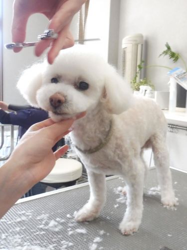 トリミング中のミルクくん!