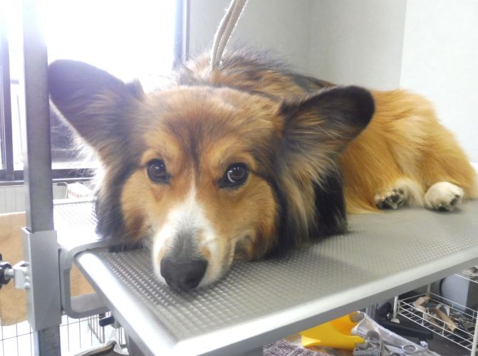 トリミング台の上に乗っても、すぐこの体勢になっていました(=^x^=)