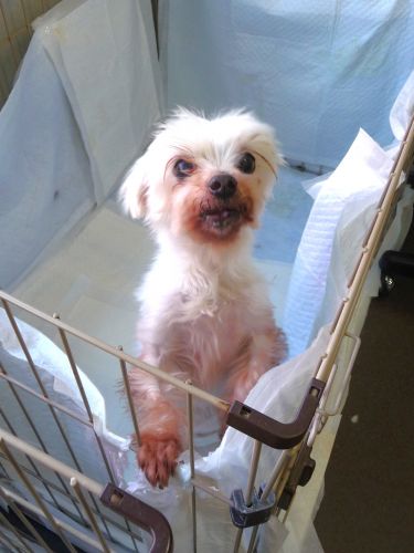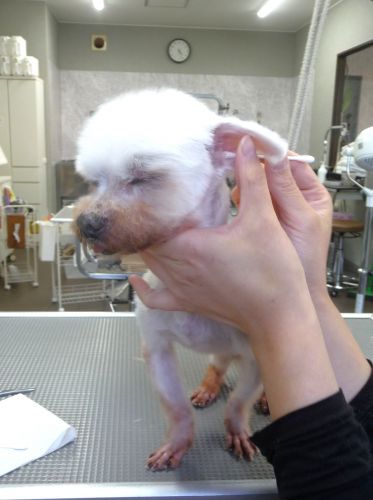 よだれやけで茶色くなっている被毛もスッキリしようね♪