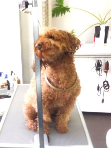 シャンプーが終わってブローをしようとすると、お顔が濡れているのが気になってアームにお顔を擦り付けていました(=^x^=)