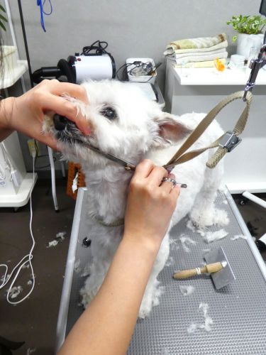 シャンプー前に全身粗刈りして、シャンプー&ブローの負担を軽減します☆
