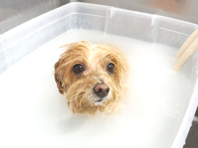 月に1・2回しか洗わない犬の皮膚には、皮脂が蓄積しています☆