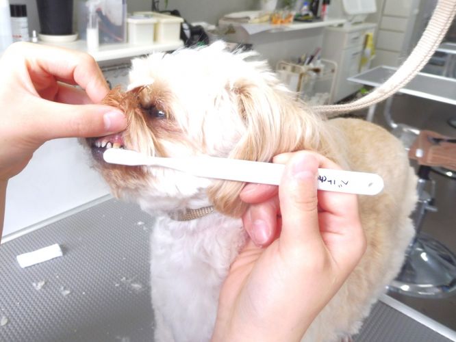 ベルちゃんの小さな歯をしっかり磨きました!