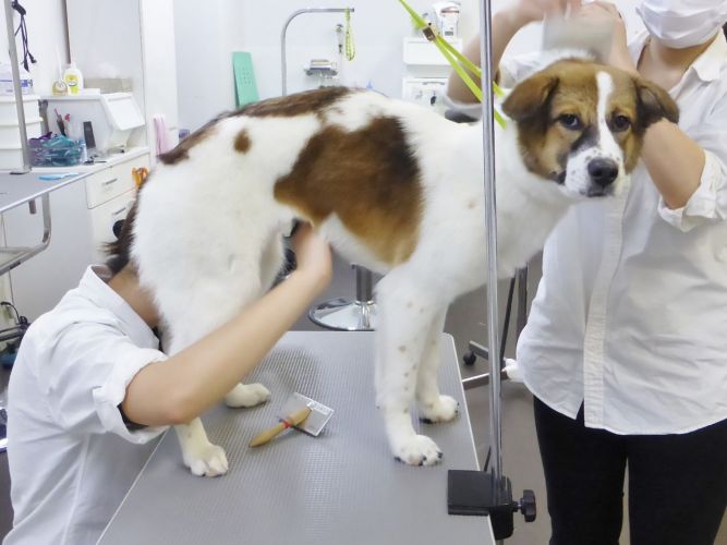 この日初めてのトリミングとのことなので、まずは道具の臭いを嗅いでもらいます!